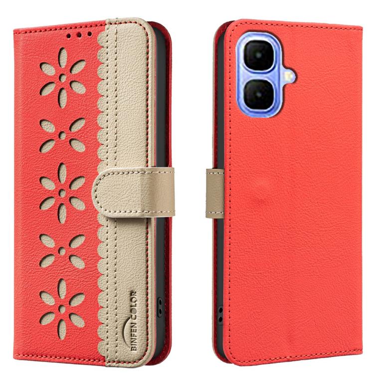 Funda de cuero RFID con estampado floral hueco para Infinix Smart 10 4G (rojo)