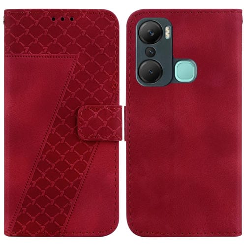 Funda de Teléfono Cuero En Relieve En Forma de 7 para Infinix Hot 20 (Rojo)