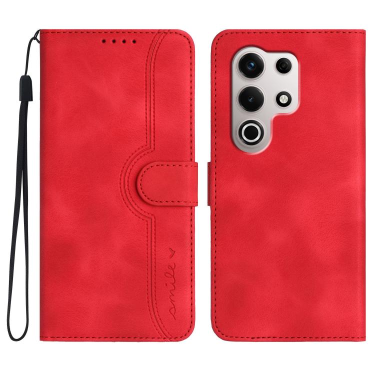 Funda de Cuero para Itel S25 Ultra con Diseño Heart Pattern y Skin Feel (Rojo)