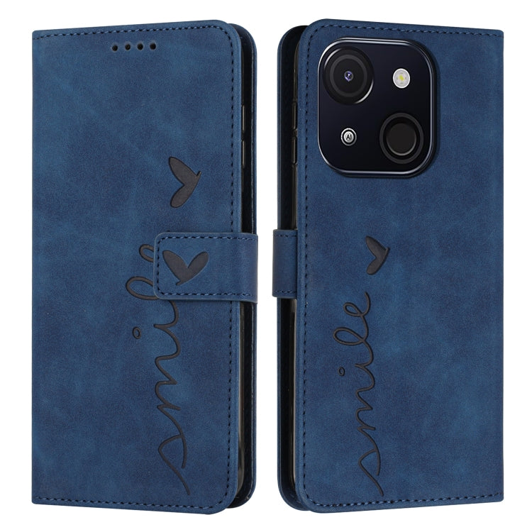 Funda de Piel con Relieve de Corazón y Cordón Largo para Teléfono Itel A50C (Azul)