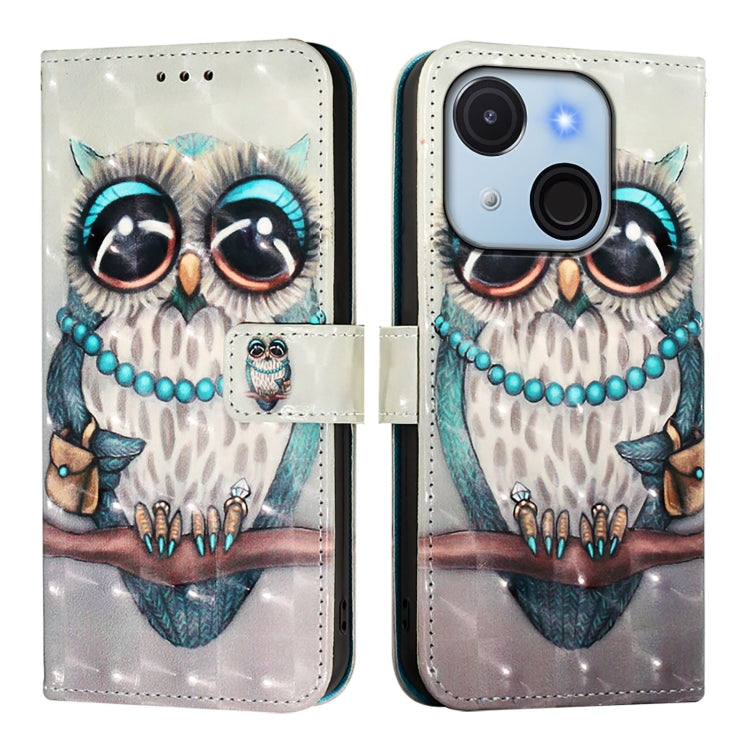 Funda de Cuero con Tapa Horizontal y Pintura 3D para Teléfono Itel A50C (Búho Gris)