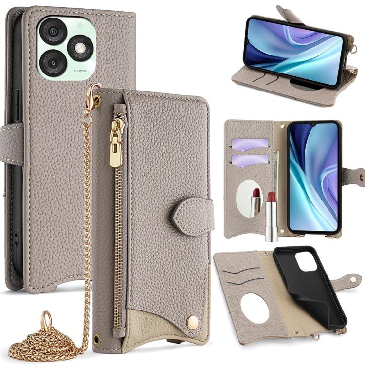 Funda para Teléfono Itel A50 Piel de Lichi Diseño Cola de Pez Cadena Cruzada (Gris)