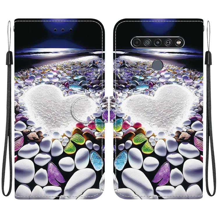 Funda de Cuero con Dibujo de Colores y Textura de Cristal para LG K61 (Corazón)