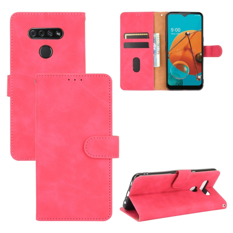 Estuche Cuero Sintético LG K51 Q51 con Hebilla Magnética Soporte Billetera (Rosa Roja)