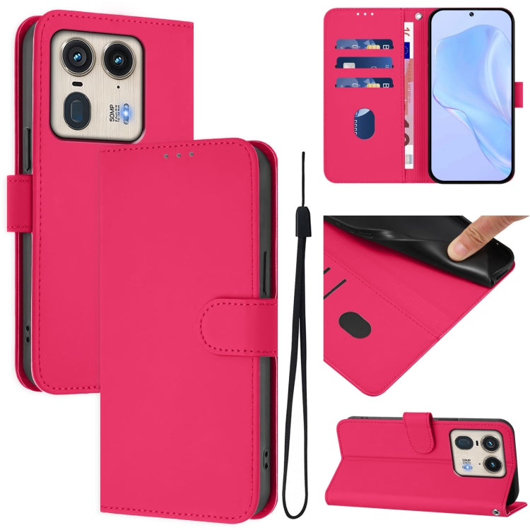 Funda de Cuero con Cordón para Motorola Edge 50 5G con Tacto de Piel (Rosa Rojo)