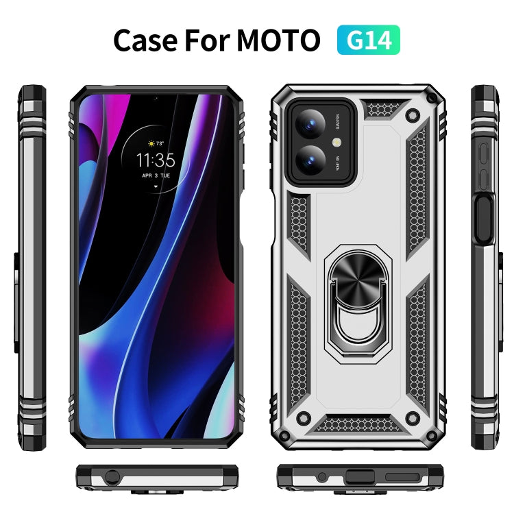 Funda para Motorola Moto G14 TPU + PC a Prueba de Golpes con Soporte (Plata)