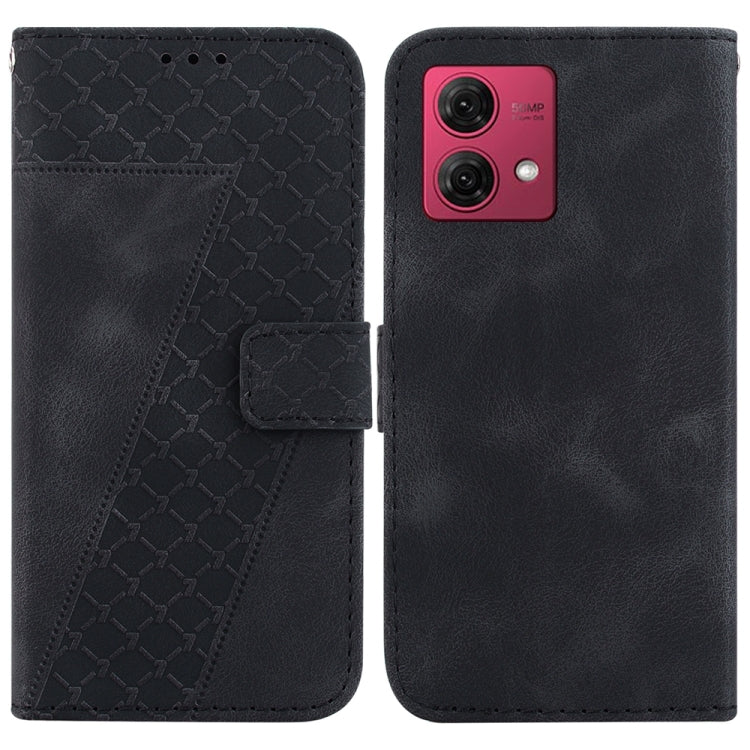 Funda de Cuero para Motorola Moto G84 con Relieve en Forma de 7 (Negro)