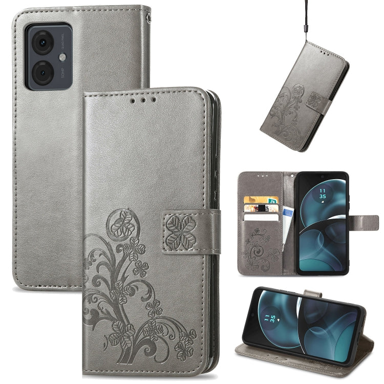 Funda de Cuero Repujado para Motorola Moto G14 con Cierre de Cuatro Hojas (Gris)