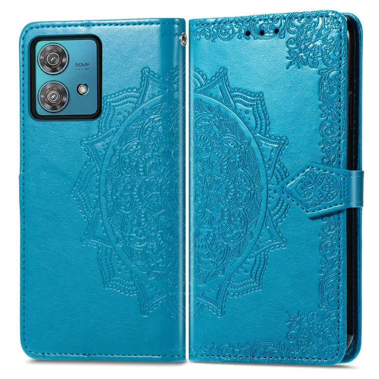 Funda de Cuero Mandala Flower para Motorola Edge 40 Neo en Relieve (Azul)