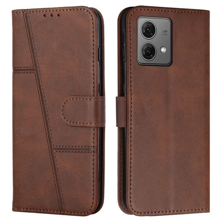 Funda para Motorola Moto G54 de Cuero con Hebilla y Textura de Becerro (Marrón)