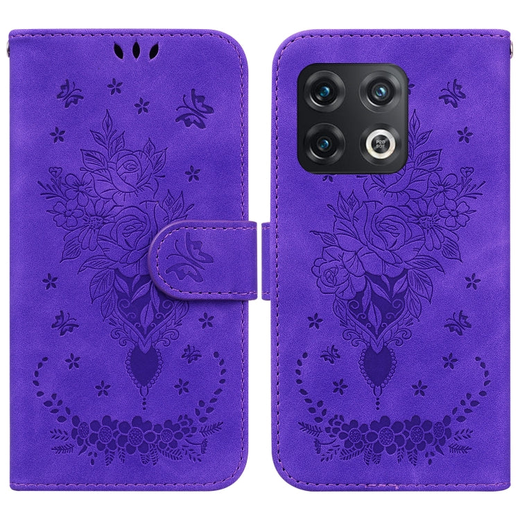 Funda para OnePlus 10 Pro 5G Butterfly Rose en Cuero en Relieve (Púrpura)
