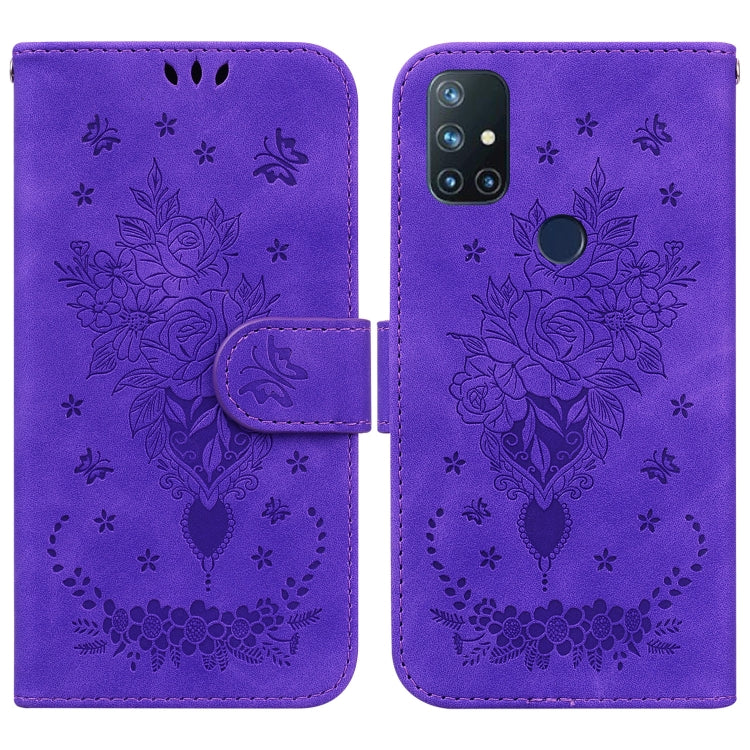 Funda para OnePlus Nord N200 5G Butterfly Rose en Relieve de Cuero (Púrpura)