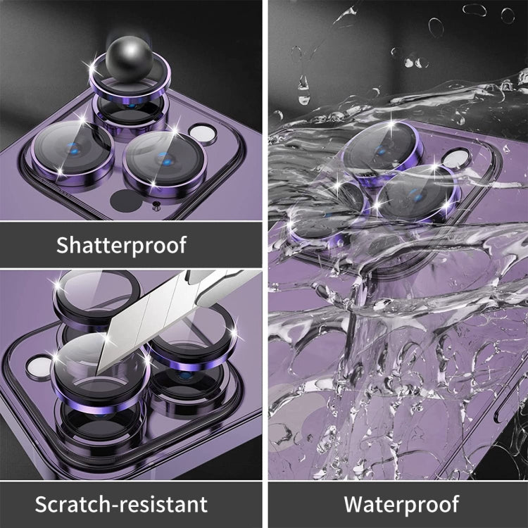 Pour iPhone 12 Pro Glitter Ring Film d'objectif de caméra en verre trempé (noir)