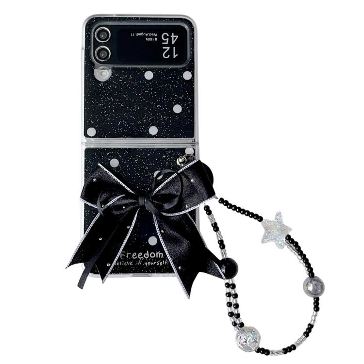 Funda para Samsung Galaxy Z Flip4 con diseño de puntos brillantes y lazo (negra)