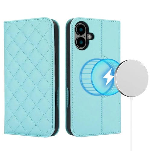 Funda de cuero Rhombic MagSafe RFID antirrobo para iPhone 17 (azul cielo)