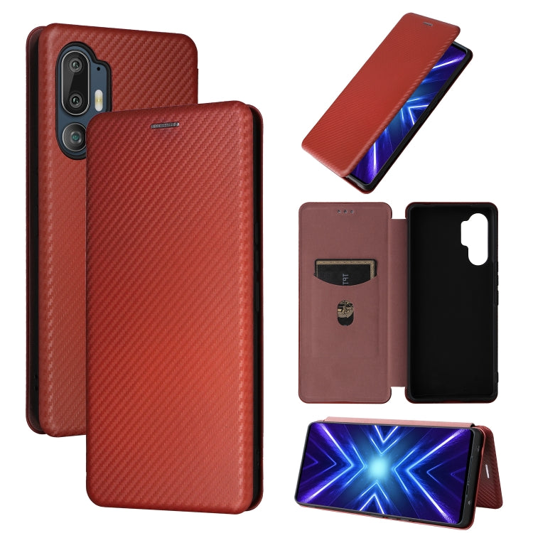 Funda de Cuero con Tapa y Textura de Fibra de Carbono para HTC U24 Pro (Marrón)