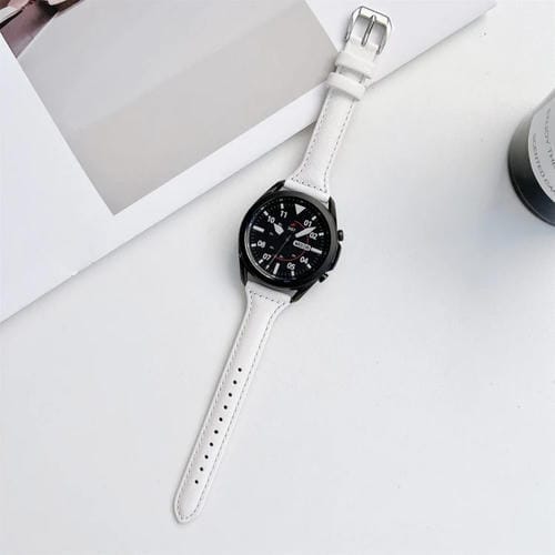 Correa de Reloj 22mm Cuero Costura Tejido Liso Cintura Pequeña (Blanco)