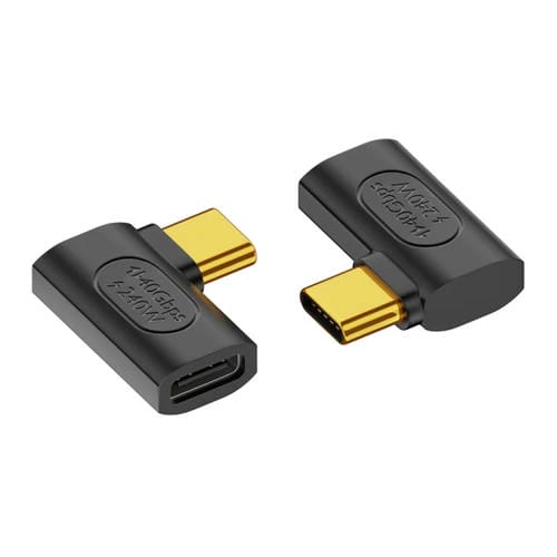 - 1x Adaptador USB-C Tipo-C Hembra a USB-C Tipo-C Macho Curvatura Lateral 40Gbps 240W (Negro)