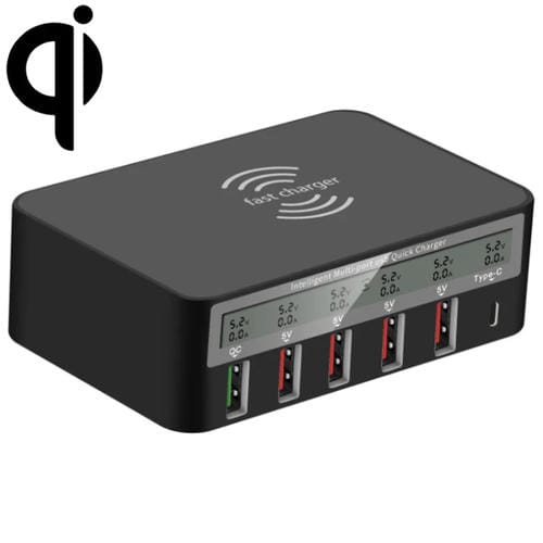 Cargador 818F 50W 5 Puertos USB y Cargador Inalámbrico Magnético Multipuerto Tipo C (Negro)