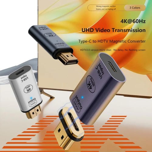 - 1x Adaptador Convertidor Tipo C Hembra a HDMI 2.0 Macho 4K 60Hz Enchufe Magnético (Púrpura Oscuro)