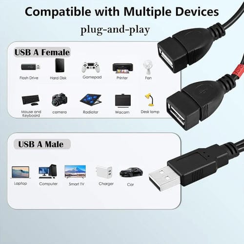 5. Conectar y listo: No requiere controlador externo. Adaptador de cable de carga USB, fácil de transportar y usar, permite cargar dos dispositivos simultáneamente. Es un práctico adaptador de cable alargador de carga con interruptor de alimentación USB macho a hembra.