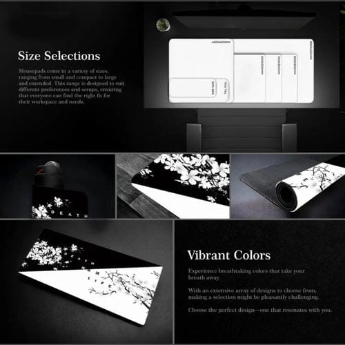 La alfombrilla de Ratón antideslizante con diseño de flor de cerezo y pintura en tinta es un Accesorio ideal para usuarios que buscan mejorar la precisión y comodidad en su espacio de trabajo o juego. Con unas dimensiones de 300x600x2 mm, esta alfombrilla ofrece una superficie amplia que puede alojar tanto el Ratón como el Teclado y otros elementos de escritorio, protegiendo eficazmente la mesa. Está fabricada con caucho y Cubierta con un paño microfino que facilita un deslizamiento suave y controlado del Ratón, optimizando la experiencia de uso. Los bordes cosidos aumentan la durabilidad al prevenir el desgaste y el desGomado, mientras que su diseño artístico aporta un toque estético distintivo. Además, es fácil de limpiar, lavable y plegable, manteniendo su funcionalidad y apariencia sin arrugas ni decoloración.