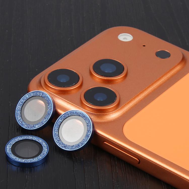 Anillo protector de lente de cámara con purpurina para iPhone 17 Pro Max (azul)