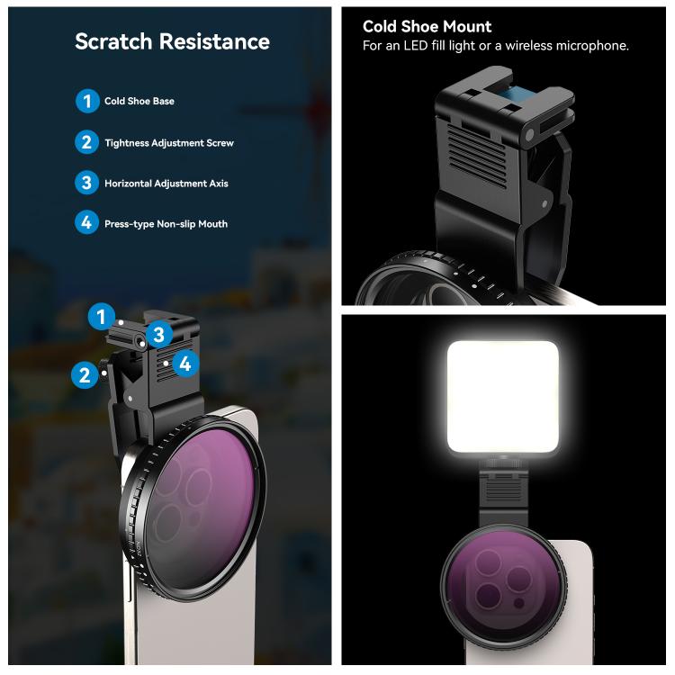 1. Utilice el clip de filtro del teléfono celular para conectar la lente a la cámara principal de su teléfono celular para tomar fotos