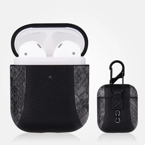 Auriculares abatibles de cuero con estuche protector a prueba de golpes para Apple AirPods 1/2 (Gris)