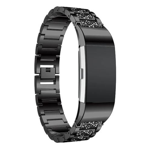 Banda de reloj de acero inoxidable sólido con tachuelas de diamante para Fitbit Charge 2 (negro)