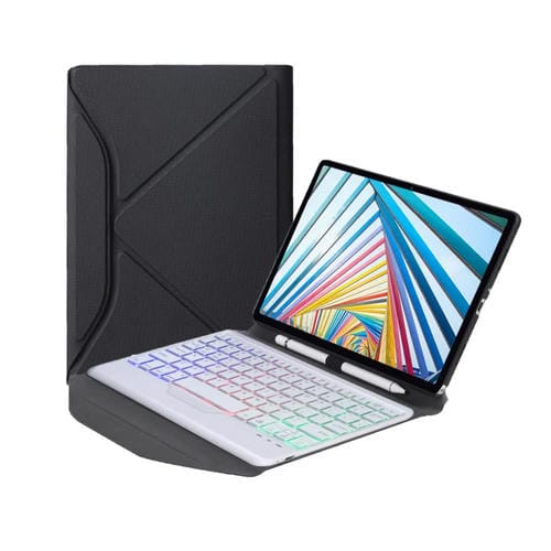 Funda Teclado Bluetooth Bm20S Cuero con luz y Soporte para Lenovo M10 Plus 10.3" Tb-X606/Tb-X606F (Negro + Blanco)