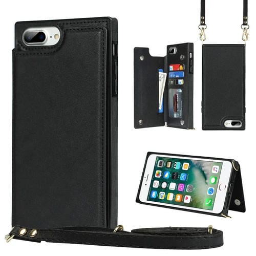 Bolsa de Tarjetas Flip Doble Hebilla Cuerpo Cruzado TPU + PU con Ranuras Billetera Foto Correa para iPhone 8 Plus / 7 Plus (Negro)