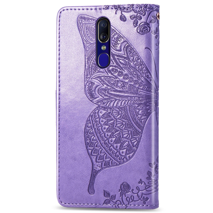 Butterfly Love Flowers Funda de Cuero con Tapa Horizontal En Relieve para Oppo F11, con Soporte, Ranuras para Tarjetas, Billetera y Cordón (Violeta Claro)