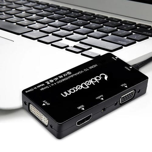 - Longitud del Cable: 15 cm; peso: 60 g; permite Conexión simultánea a salidas HDMI, VGA y DVI; incluye interfaz para fuente de Alimentación adicional en sistemas Windows