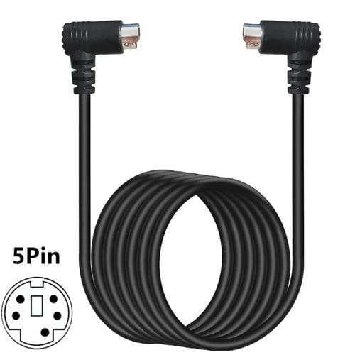 - Conector Mini Din de 5 pines, longitud 0,5 metros, Conector macho a hembra en ángulo (codo), diseño plug-and-play