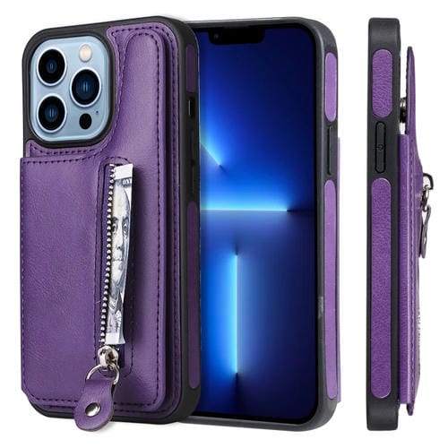 Caja de Hebilla Doble con Cremallera para iPhone 13 Pro (Púrpura)