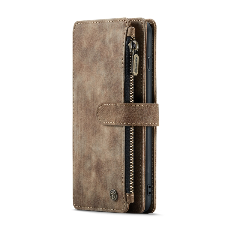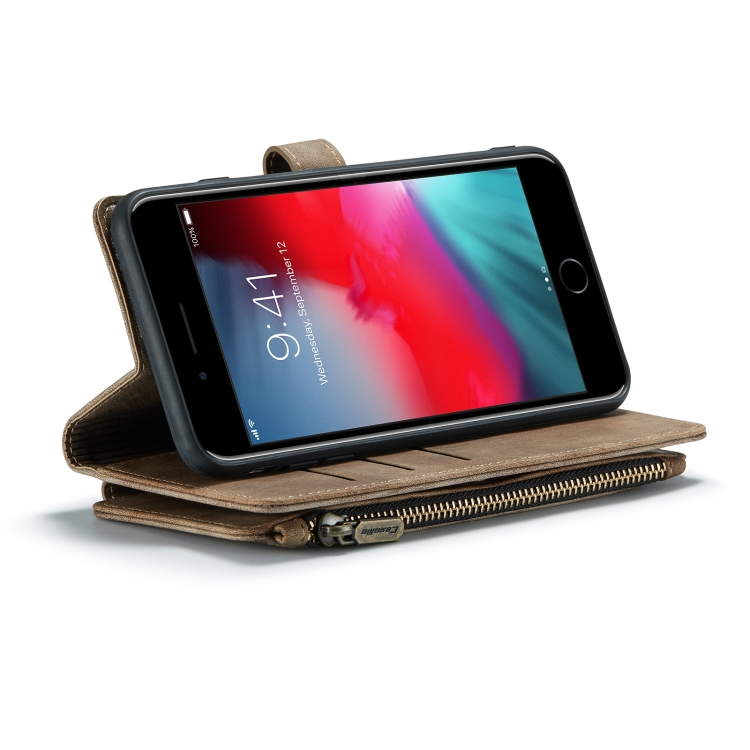 Funda de Cuero Caseme-C30 Pu + TPU Horizontal Multifuncional con Soporte Ranura Tarjeta Bolsillo Cremallera para iPhone 8 Plus 7 Plus 6 Plus (Brown)