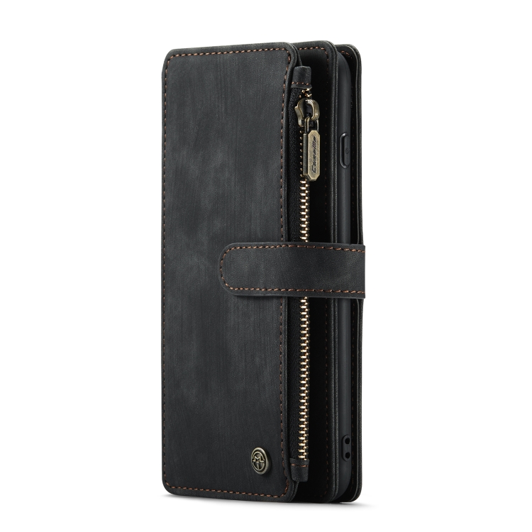 Funda de Cuero Caseme-C30 para iPhone 8 Plus 7 Plus 6 Plus con Soporte Ranura Tarjeta Bolsillo Cremallera (Negro)