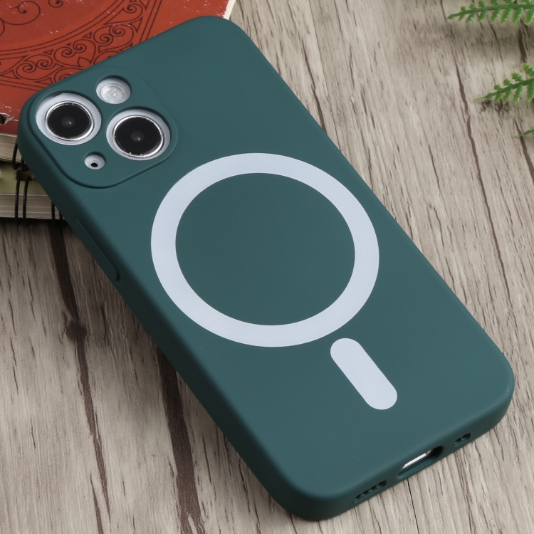 Caso de Silicona Líquida Magsafe para iPhone 13 Mini a Prueba de Golpes (Verde Oscuro)