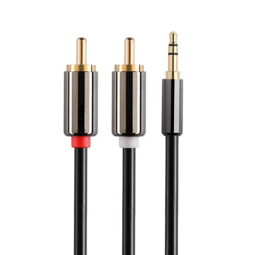 • 1x Conector de Audio Estéreo 3,5mm Chapado en Oro a 2 Cables RCA Macho de 2 Metros