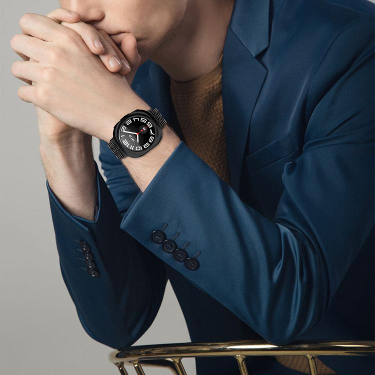 Correa de acero inoxidable con cinco cuentas y hebilla de tortuga para Samsung Galaxy Watch Ultra de 47 mm (negro)