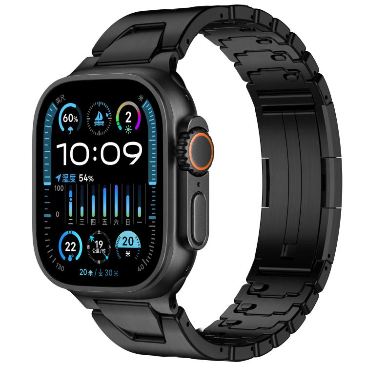 Correa de acero inoxidable con hebilla de mariposa y liberación rápida tipo H para Apple Watch de 42 mm, 41 mm, 40 mm y 38 mm (negra)