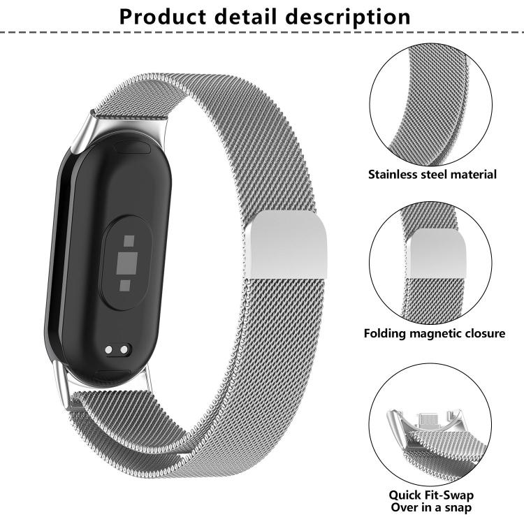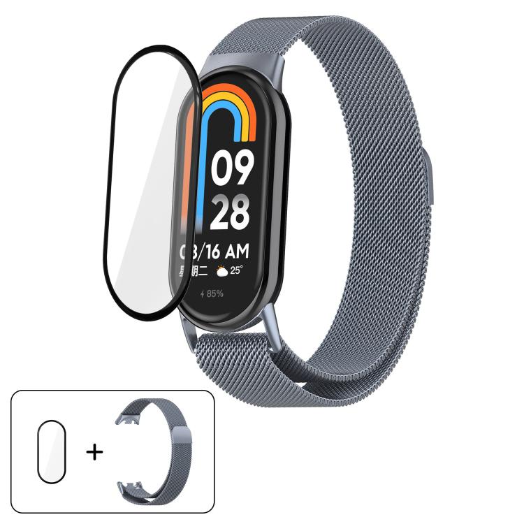 Correa de acero inoxidable milanesa con película curva 3D para Xiaomi Smart Band 9/9 NFC (gris espacial)