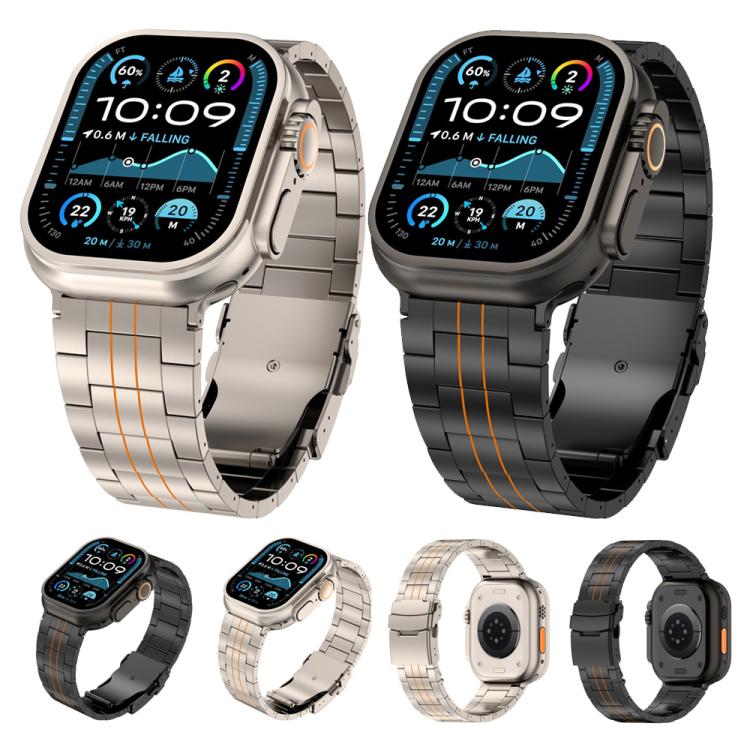 Correa de aleación de titanio con cierre de seguridad de tres cuentas para Apple Watch de 46 mm / 49 mm / 45 mm / 44 mm (naranja titanio).