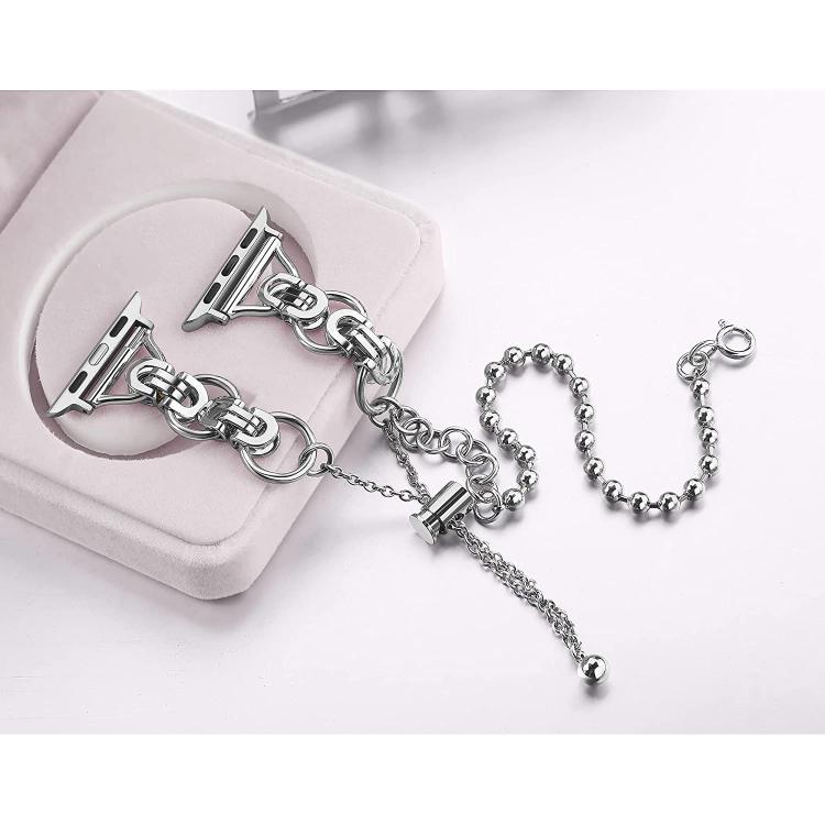 Correa de aleación de zinc con cadena de cuentas de doble círculo para Apple Watch de 46 mm, 49 mm, 45 mm y 44 mm (plateada)