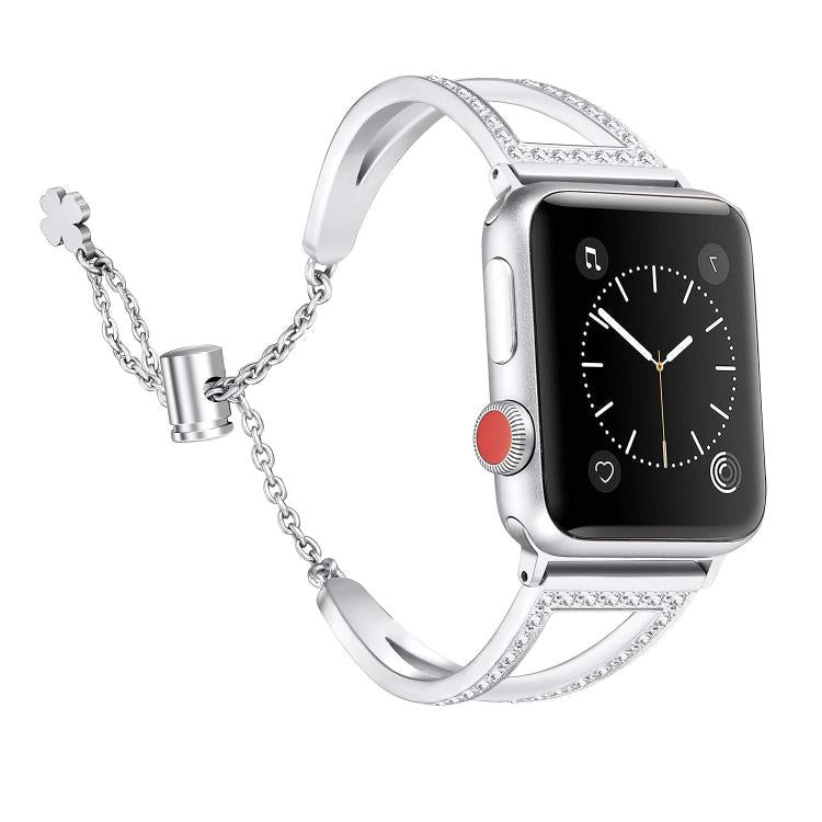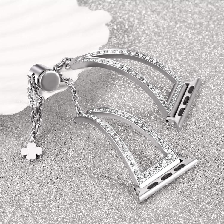 Correa de aleación de zinc con diamantes en forma de V para Apple Watch de 42 mm, 41 mm, 40 mm y 38 mm (plateada)
