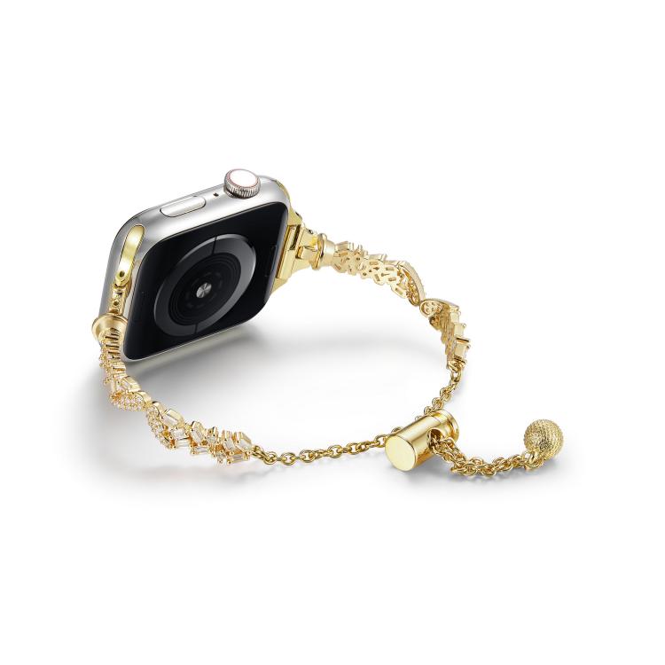 Correa de aleación de zinc con diamantes triturados para Apple Watch de 46 mm, 49 mm, 45 mm y 44 mm (dorada)