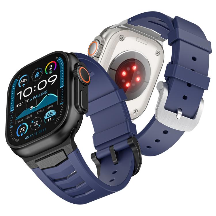 Correa de caucho fluorado con hebilla de acero inoxidable para Apple Watch Ultra/Ultra 2 de 49 mm (azul y negro)