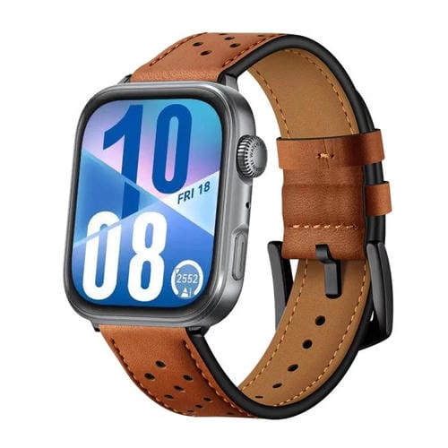 Correa de cuero con agujeros para Huawei Watch Fit Plum Blossom (marrón)