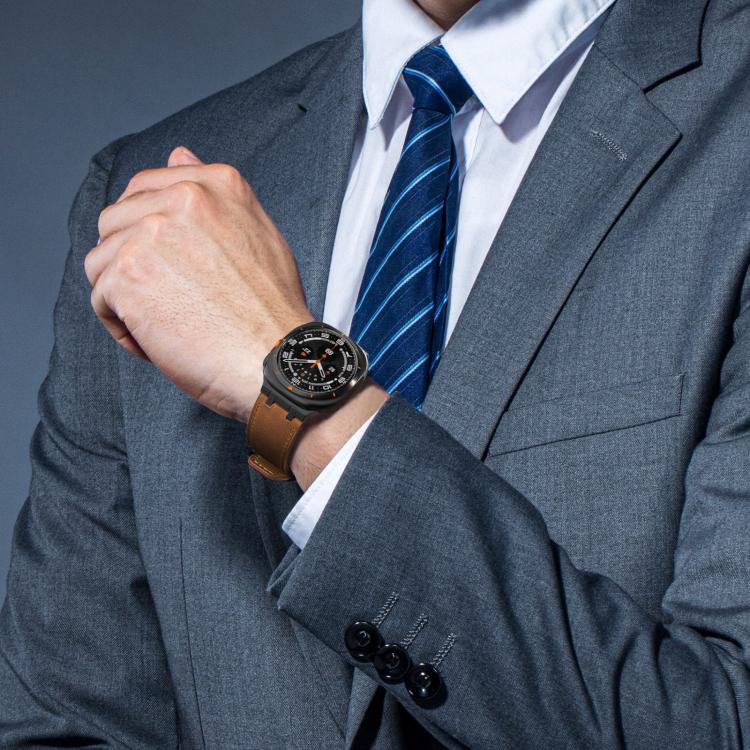 Correa de cuero Crazy Horse para Samsung Galaxy Watch Ultra de 47 mm (negro, marrón y hebilla negra)